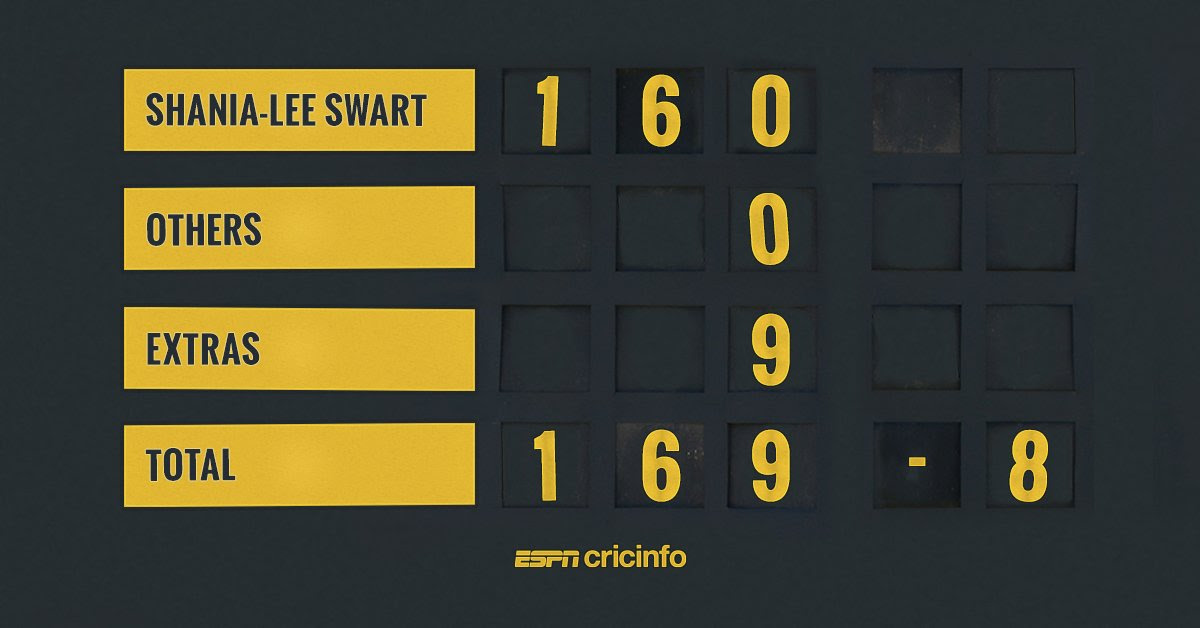 You see weird scorecards and then you see one person making 160 runs in a team total of 169.